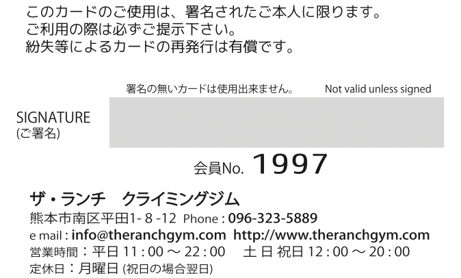 会員証は毎回必ず受付の際にご提示下さい。